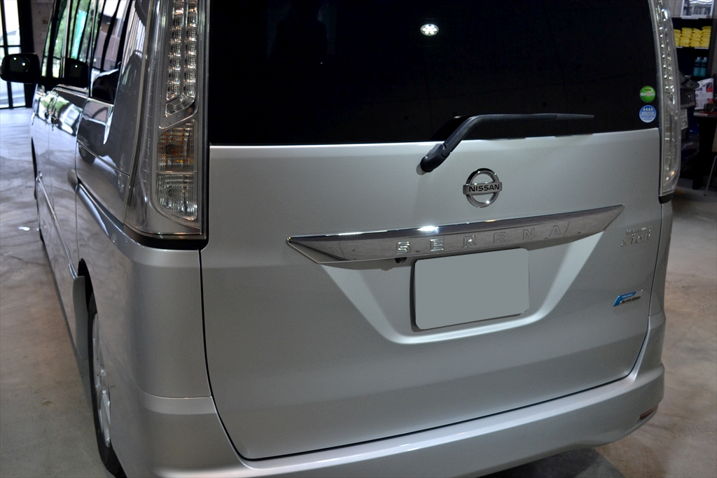 今回ご入庫頂きましたセレナですが、カラーがシルバーということもありパっと見には傷は目立ちませんがやはり洗車傷、経年車ゆえの汚れが見受けられました。